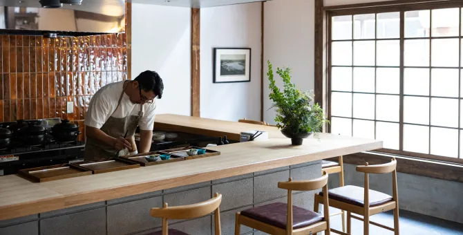 魚は、玄界灘で獲れたものを中心に、お米は佐賀県産の熟成米をブレンド、出汁は九州の素材を中心に独自配合するなど、一つひとつの食材に丁寧に向き合っています。私たちが大事にしているのは、惜しまずひと手間をかけることで、その素材が持つ良さを引き出すこと。土地の恵みと向き合いながら、丁寧に仕立てています。